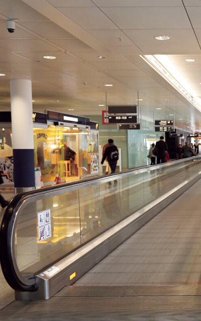科技感應之美--自動啟用/停止運行裝置,位于樓層板附近裝有自動 感應傳感器,乘客接近時能自動感應檢測并運行,當 乘客離開時會自動停止。